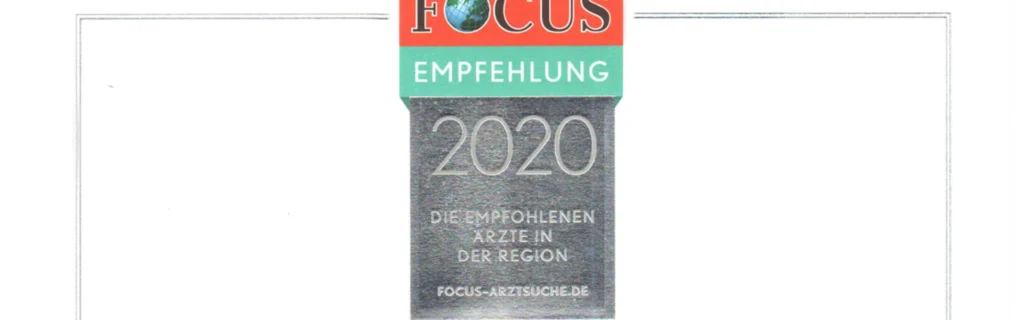 Auch in diesem Jahr wurden wir von der Fachzeitschrift Focus (focus-arztsuche.de) erneut mit unserer Praxis ausgezeichnet.